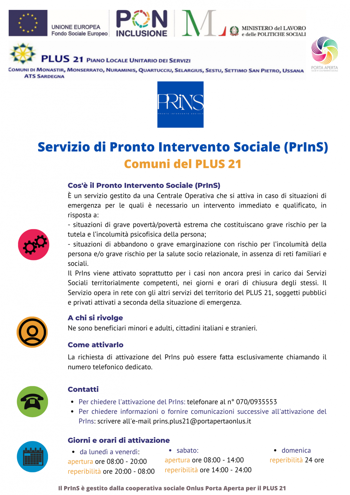 Ricordiamo che dal mese di agosto il servizio Pronto Intervento Sociale (PrInS) che Porta Aperta gestisce per il PLUS 21 ha un nuovo numero telefonico: 070/0935553.