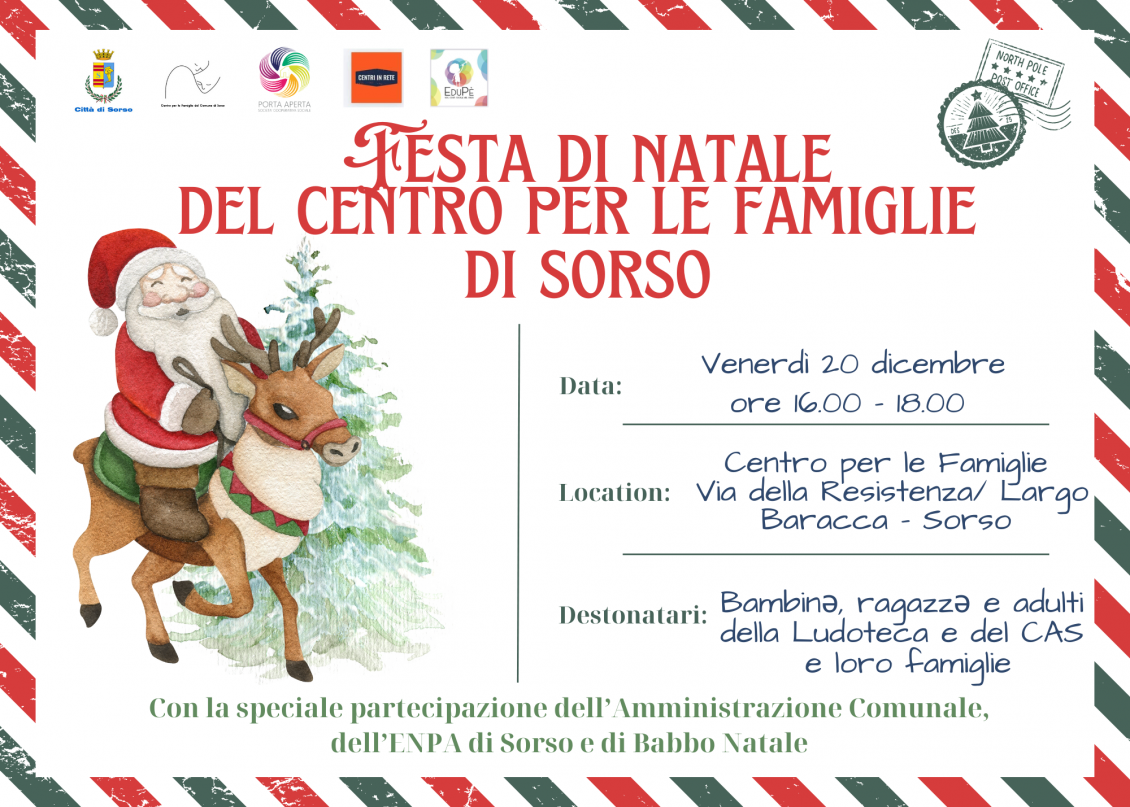 Vi aspettiamo per festeggiare insieme venerdì 20 dicembre, ore 16.00-18.00, presso il Centro per le Famiglie in Via della Resistenza/Largo Baracca – Sorso 🙂