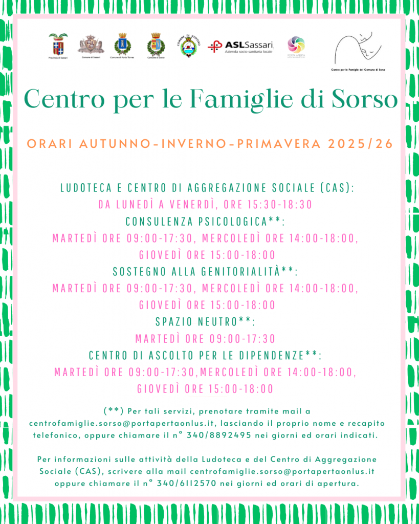 “Progetto Aurora è il servizio antiviolenza gestito da Porta Aperta per il PLUS del Comune di Sassari, Città di Porto Torres, Comune di Sorso, Comune di Stintino.
