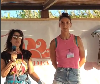 Marco Pistidda, fondatore della Bonga Surf Shool che oragnizza il Girl Surf Power, Angela Piredda (referente comunicazione per Porta Aperta e per Free.Da), Beatrice D’Elia (educatrice di Porta Aperta che opera anche nella azioni di sensibilizzazione di Free.Da)